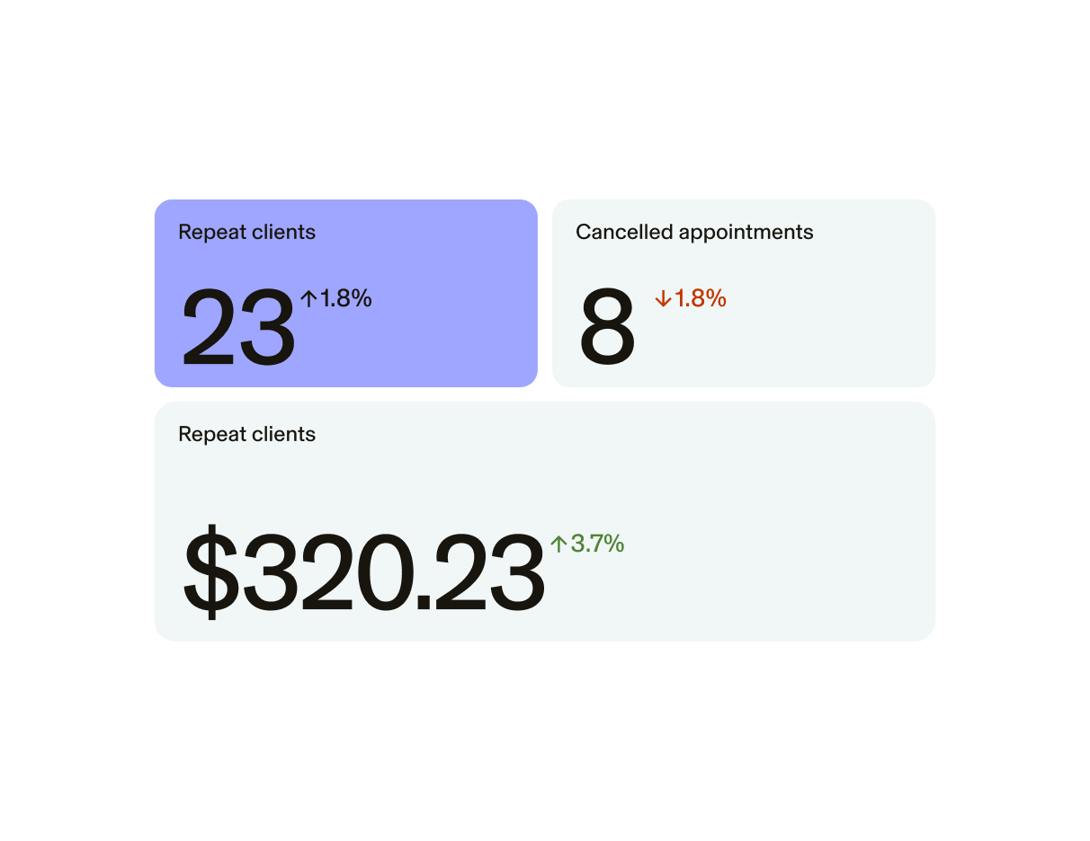 Track sales, staff performance, client retention, booking utilization, and more in real-time from your Analytics Dashboard.